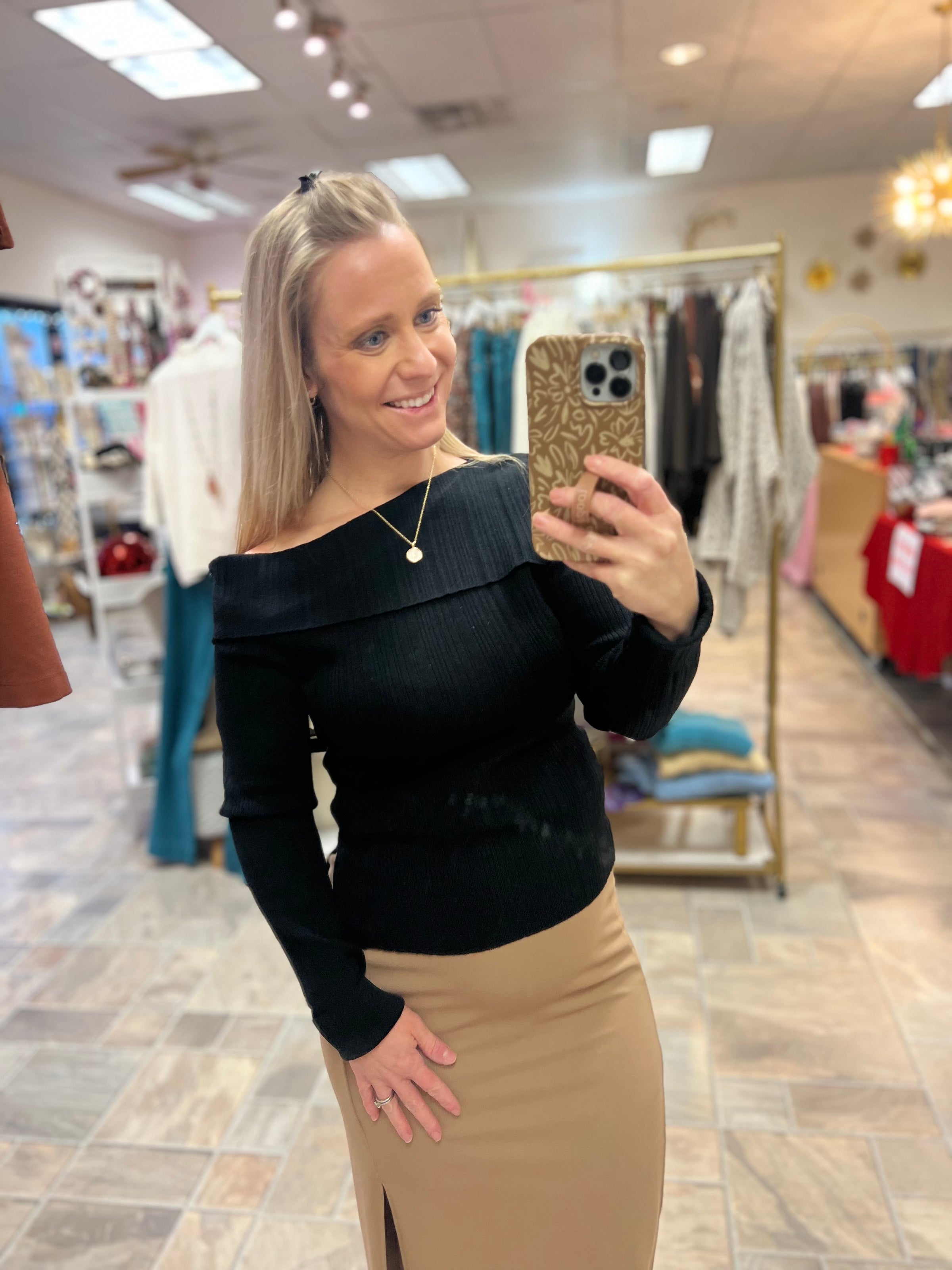 Elevate your style with this Black Asymmetric Shoulder Top, crafted from cozy ribbed material to keep you comfy all day. The playful asymmetric shoulder detail adds a flirty twist, while the long sleeves bring a chic balance. Perfect for turning heads with effortless flair!