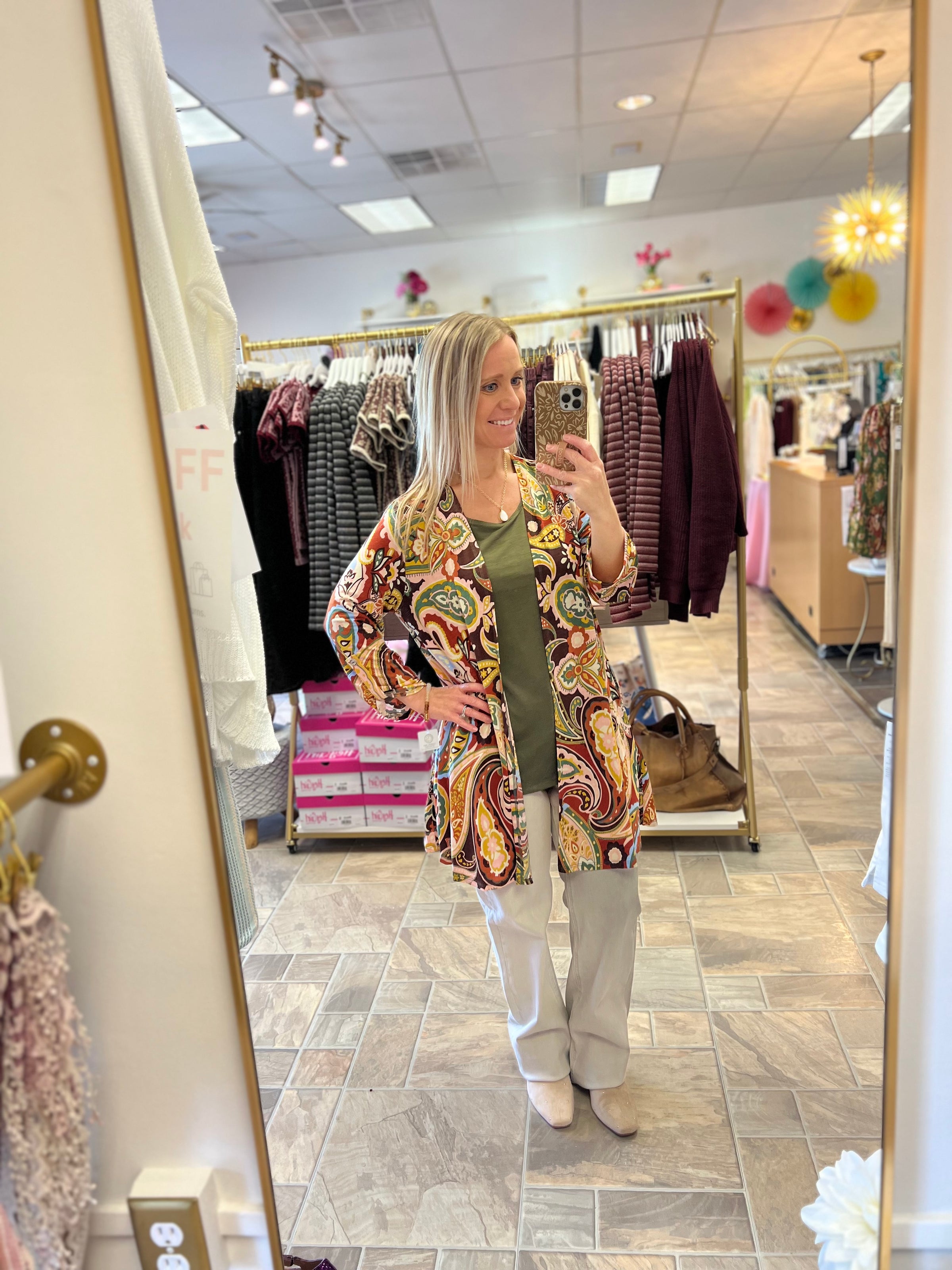 Embrace cozy chic with the Made For Fall Cardi. This open-front cardigan features roll-up 3/4 length sleeves secured with closures, adding a playful flair to your look. Crafted from slinky, wrinkle-free material, it stays smooth and stylish all day. Perfectly pairs with our Classic Round or V-Neck Tops for effortless layering that’s both comfy and cute.